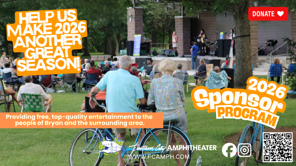 For the past five years, the Fountain City Amphitheater has been proud to bring free, high-quality entertainment to Bryan and the surrounding area. What started as a dream to create a community gathering place has now grown into one of Northwest Ohio’s most vibrant spaces for music, arts, and fellowship. Thanks to the generosity of 58 businesses, individuals, and families, our 2025 season was one of our best yet. Together, we hosted 30 events with more than 6,000 attendees and raised $87,000 to cover expenses.